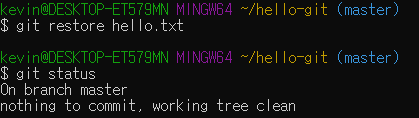 그러면 작업트리에서 수정한 파일이 변경사항이 취소된다!