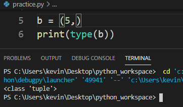 int형이다.. 한개만 있을때 튜플로 쓰려면