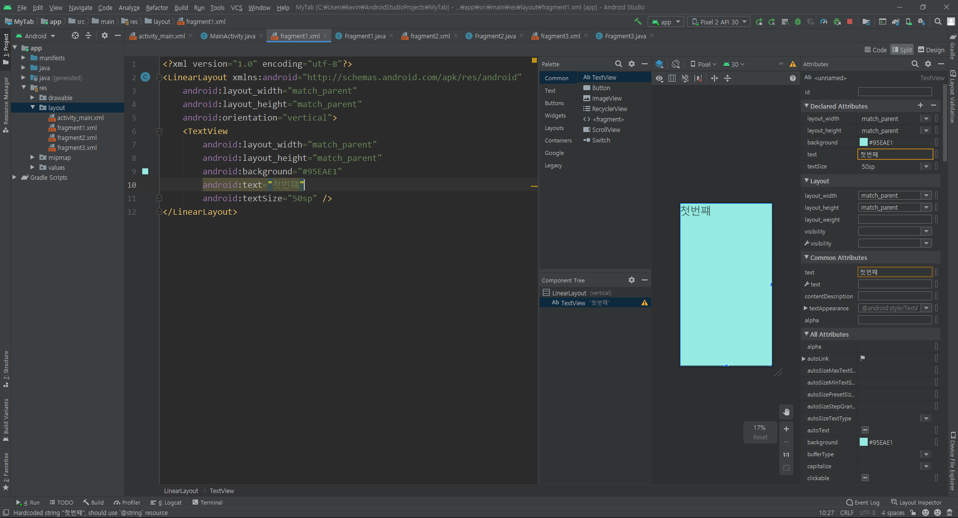 또한 액티비티 위에 띄워줄 프래그먼트 생성
