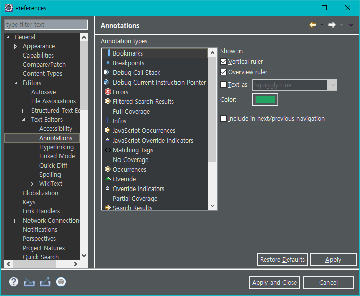 2: General -> Editors -> Text Editors -> Annotations