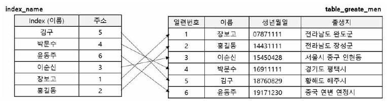 예를 들어 위의 그림과 같은 테이블에서 일련번호를 기본키로 하는 경우, 일련 번호에 대한 인덱스는 자동으로 생성되나, 생년월일이나 이름을 기준으로 하는 인덱스는 자동으로 생성되지 않는다.