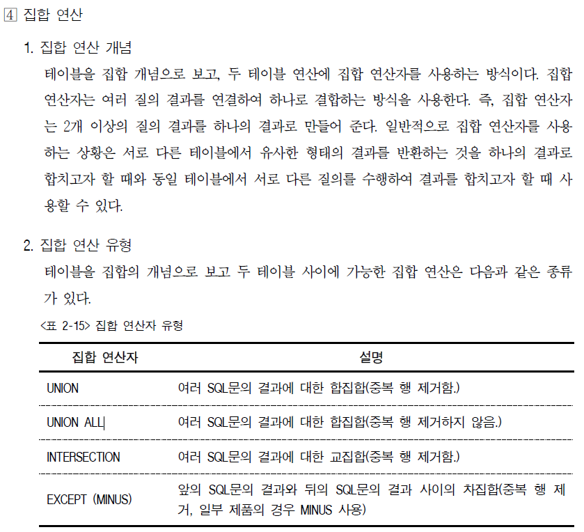 집합 연산 - 테이블을 집합 개념으로 조작하는 기법