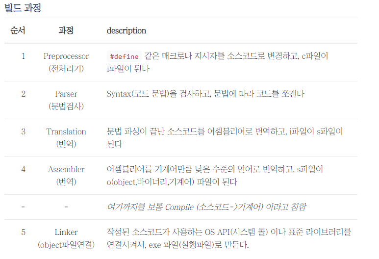 빌드는 소스코드를 실행할 수 있는 상태로 변환하는 과정을 말하며, 프로그래밍 언어의 유형에 따라 빌드 과정이 상이하다.