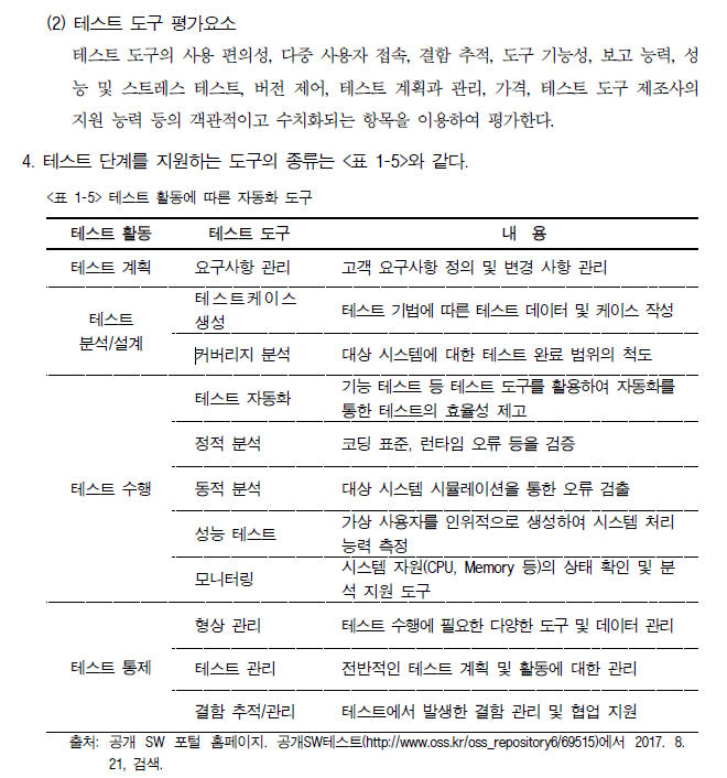 (가) 테스트 데이터의 재입력과 재구성 같은 반복 작업의 자동화를 통하여 테스트 인력과 시간을 최소화한다.