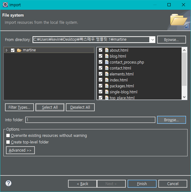 구글링해서 가져온 디자인 템플릿을 eclipse로 가져오고 싶다면 일단